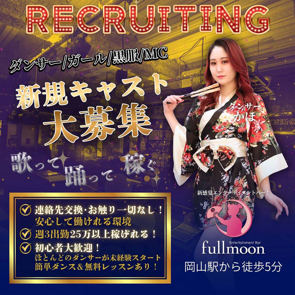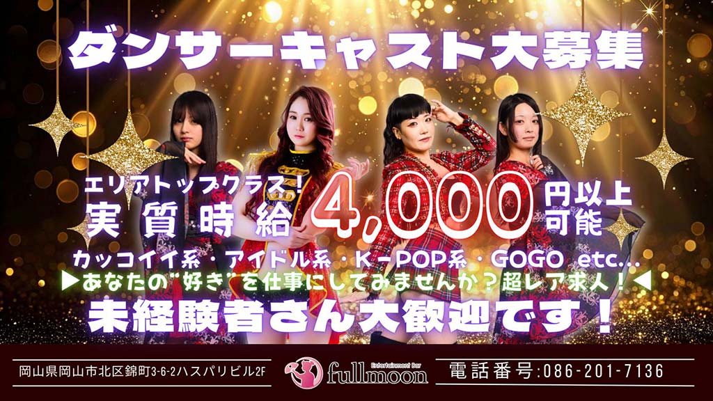 中四国初、新感覚エンターテイメントバー 岡山駅前で働くなら「fullmoon」